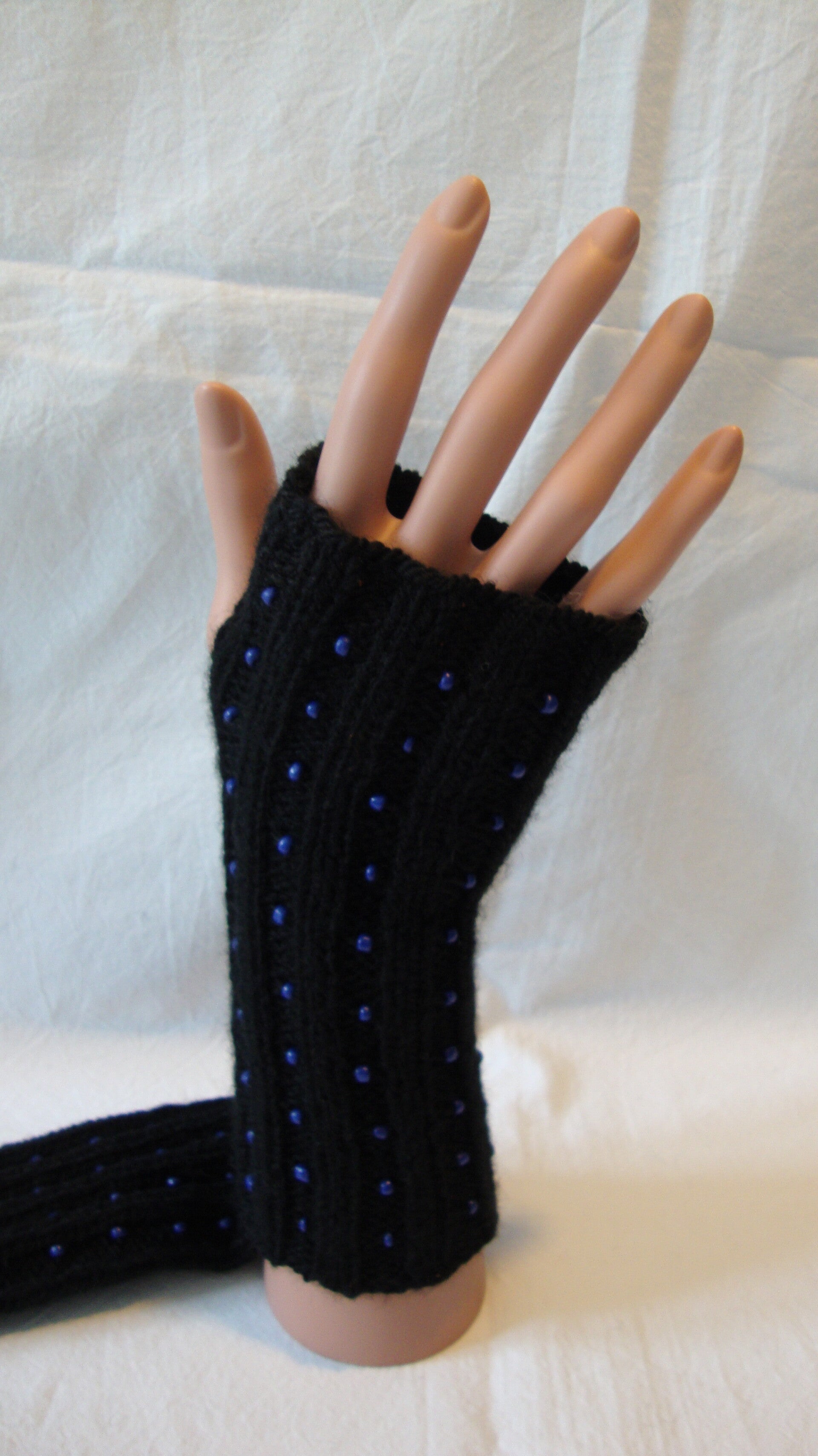 Schwarz mit blauen Perlen