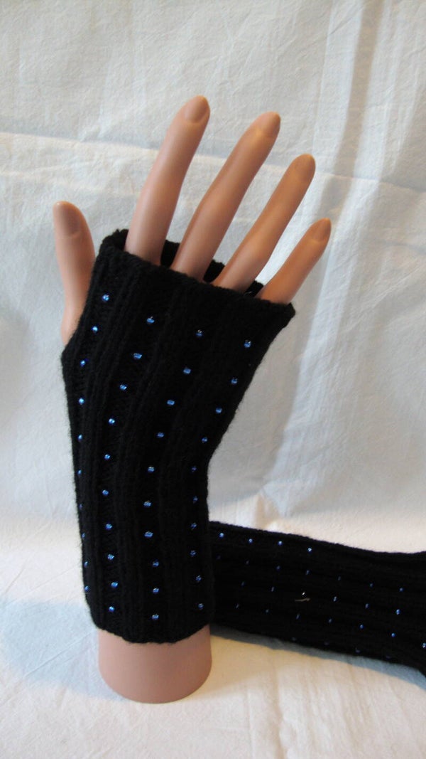 Schwarz mit blauen glanz Perlen