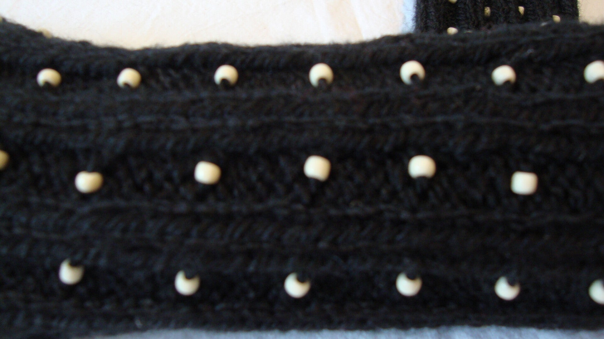 Schwarz mit beigen Perlen